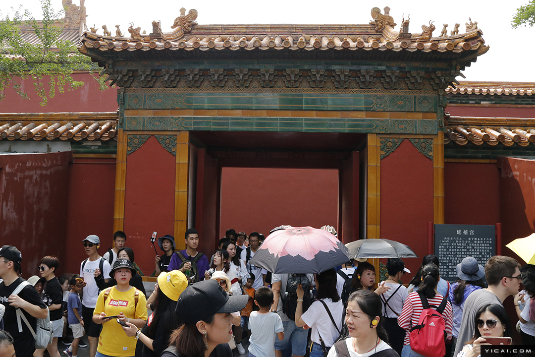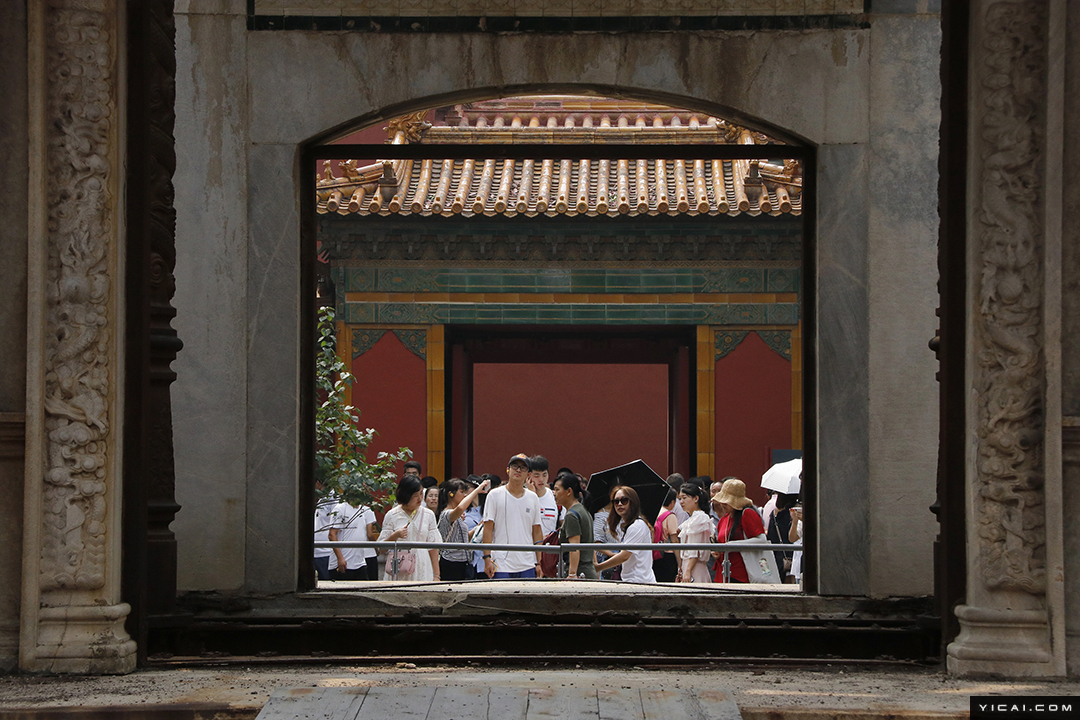 因近期宫斗戏《延禧攻略》《如懿传》接连热播,剧中几位主要角色的住所也引发游客好奇心,成为故宫游的热门景点。东西六宫当中并不“出众”的延禧宫,因电视剧《延禧攻略》热播而人气火爆。不少游客均表示,自己正是因为看了电视剧,才“慕名而来”。图为8月26日,北京,游客们参观故宫博物院的延禧宫。