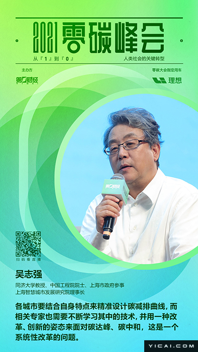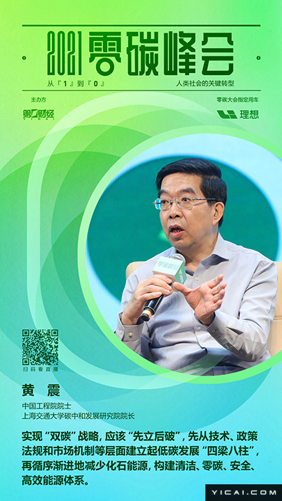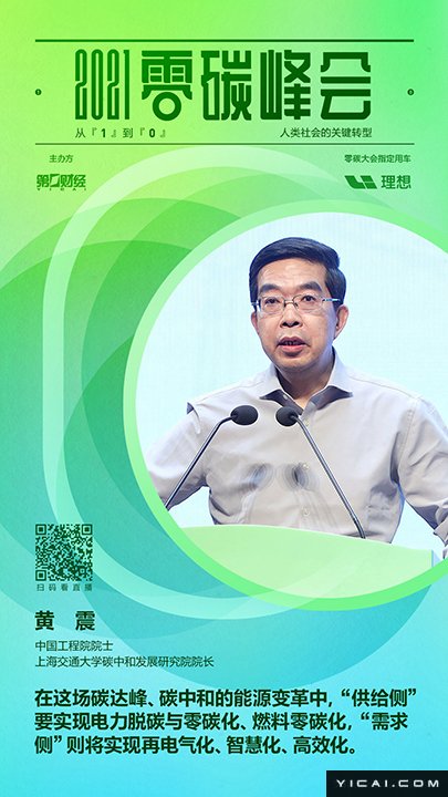 2021年8月13日,2021零碳峰会:从“1”到“0”,人类社会的关键转型在上海世博会博物馆举行。关于如何实现可持续发展的议题得到更广泛关注,可以预见,碳达峰、碳中和将对我国的社会经济结构产生重大影响,对环境和社会负责的方式开展经济活动,成为全球企业、投资者和金融机构的共识。图为中国工程院院士、上海交通大学碳中和发展研究院院长黄震: 在这场碳达峰、碳中和的能源变革中,“供给侧”要实现电力脱碳与零碳化、燃料零碳化,“需求侧”则将实现再电气化、智慧化、高效化。