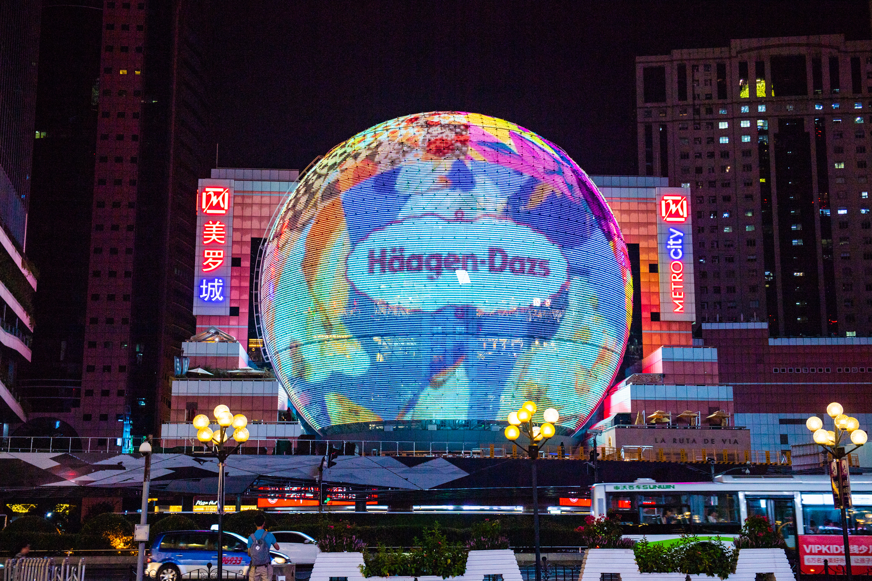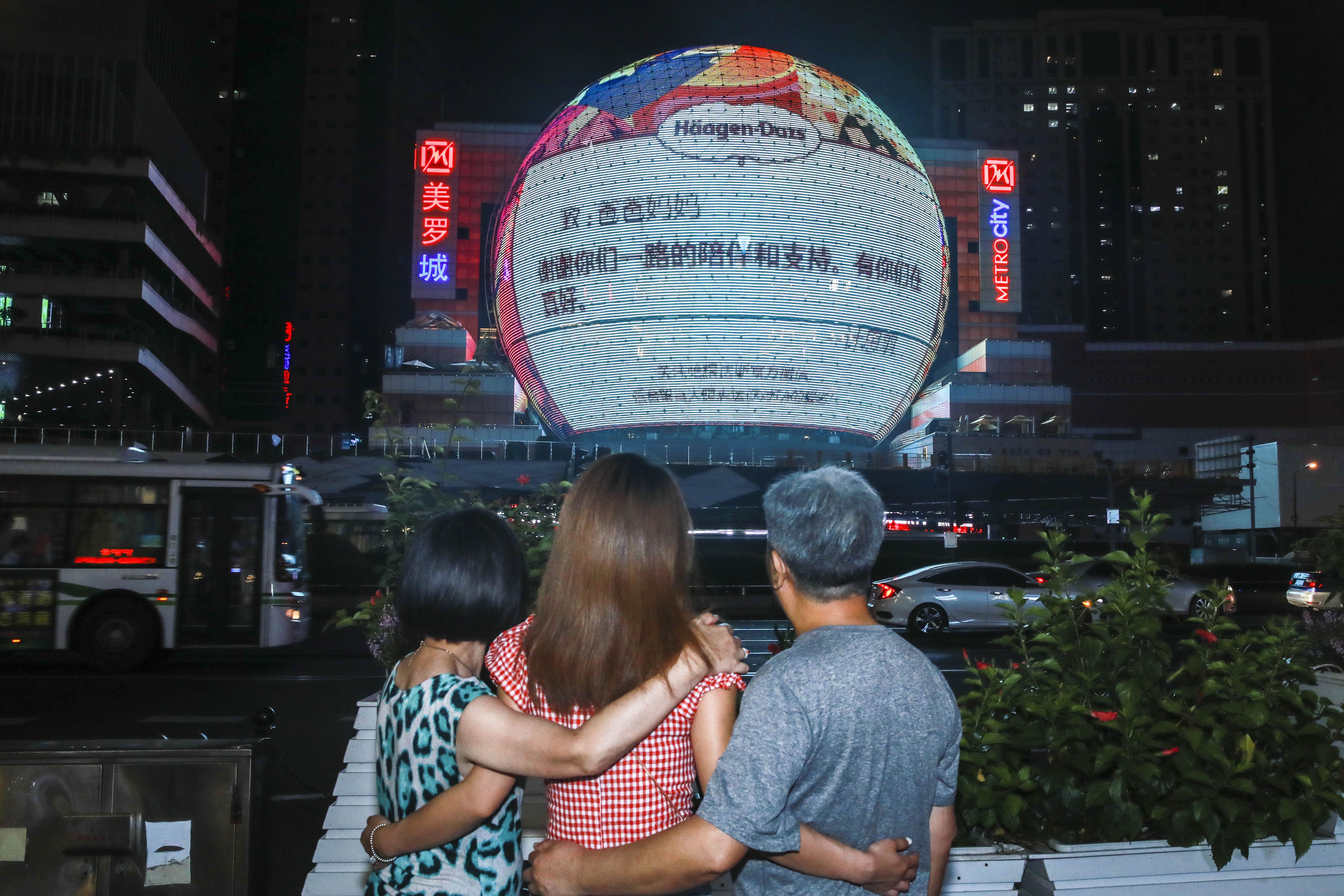 (2018年9月15日,中国•上海) 明月灿然,中秋渐近,团圆的欢乐气氛弥漫在申城的空气中。9月15日,上海知名地标——美罗城球型大屏幕投射出数以百计的“真情告白”,吸引了众多市民驻足观看参与,温情的氛围与美丽的月色交相辉映,成就沪上最动人的夜晚。为了让今年的中秋更添圆满,风靡全球的冰淇淋领导品牌哈根达斯通过搭建线上线下平台,助力更多人用 “有你在真好”对TA表达感谢,让为爱发声的力量成为今年中秋不可复制的焦点。