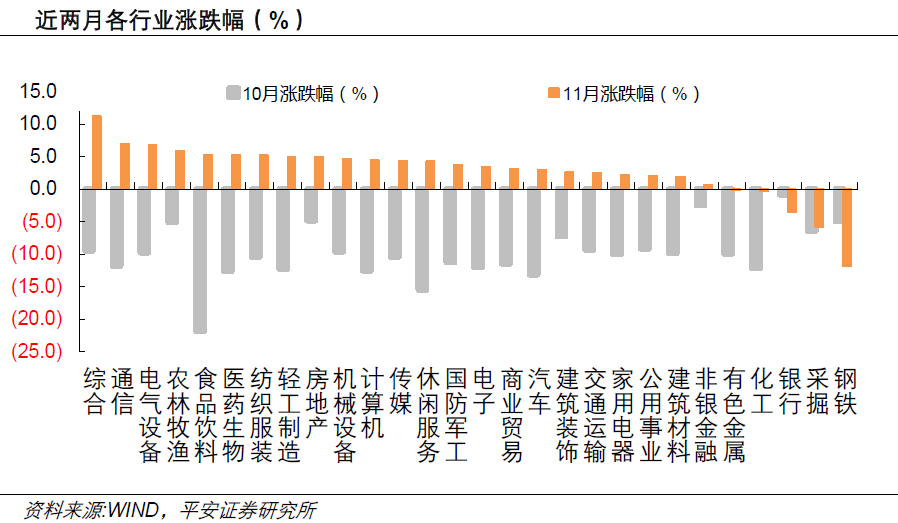 平安证券则预计,12月份的市场预计进入平稳期。一方面来自于危机模式的相对解除,对外美联储加息预期以及市场风险有所降低,对内股权质押风险已经有较大缓解,各地政府政策以及资金落地不断;另一方面,市场政策频发暖风不断,从股指期货的松绑到银行理财子公司新规正式落地,政策底效果初步显现。当前市场估值已经回落至历史较低水平,年底市场交易会逐渐趋于稳定。
