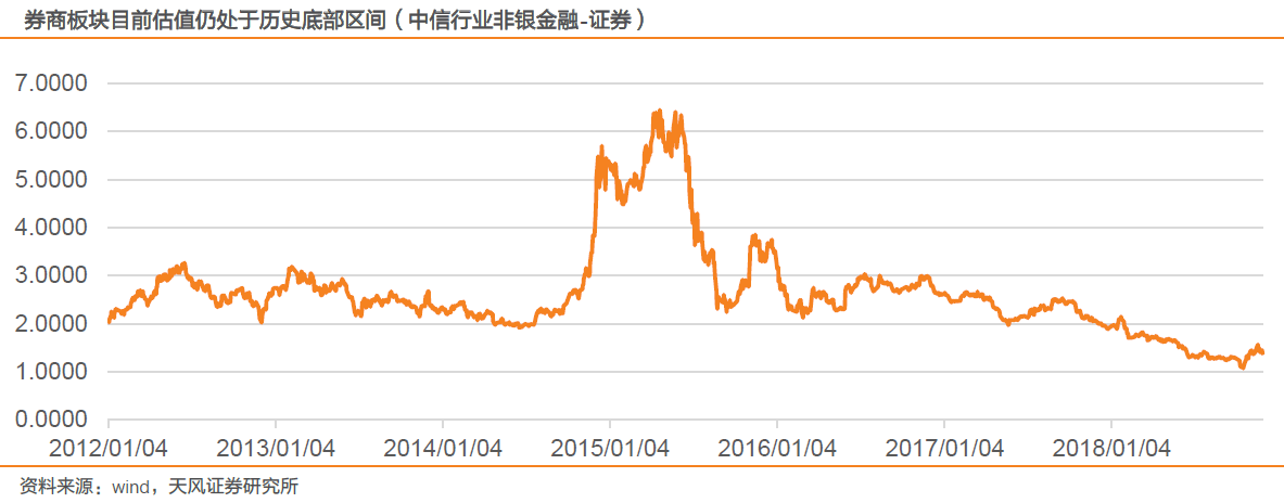 广发证券认为,中期而言,2018年预测行业净资产收益率(ROE)水平预计低于4%,随着科创板加速推进、衍生品市场持续健康发展,行业2019年ROE有望恢复到5%~6%的正常水平,建议持续关注龙头券商投资价值。系列支持政策下,券商资产质量改善预期有望进一步促进板块估值修复,参考三季度公募基金重仓持股情况,三季度券商板块配置比例0.96%,较上季度末的0.92%略有上升,仍处于大幅低配状态,目前证券板块2018年PB估值为1.21倍,仍有提升空间。