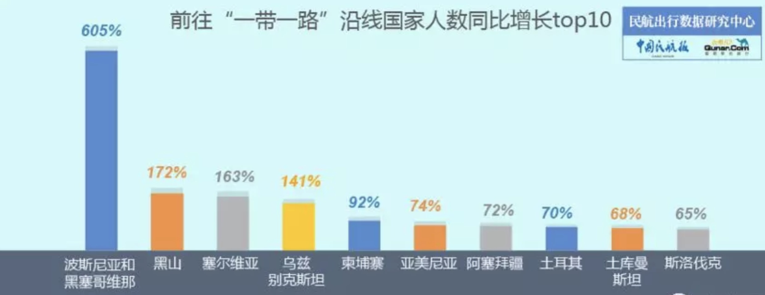 《2018年民航散客出行报告》显示,在出境游方面,国人赴波黑、黑山、塞尔维亚、乌兹别克斯坦等沿线国家的人次增长明显,其中前往波黑的人数同比增加超6倍。波黑、塞尔维亚对中国游客的免签政策,成为出行人数增长原因之一。