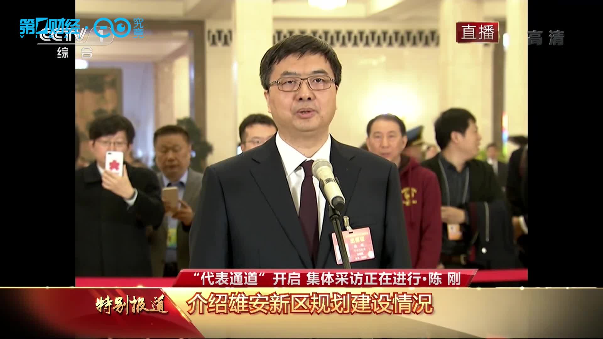 3月5日8时5分,十三届全国人民代表大会第二次会议首场"代表通道"开启,首位接受媒体采访的代表是河北省委常委、副省长、雄安新区党工委书记、管委会主任陈刚,在介绍规划建设情况时,陈刚说:雄安新区规划顶层设计已经完成,即将转入大规模实质性开工建设阶段。