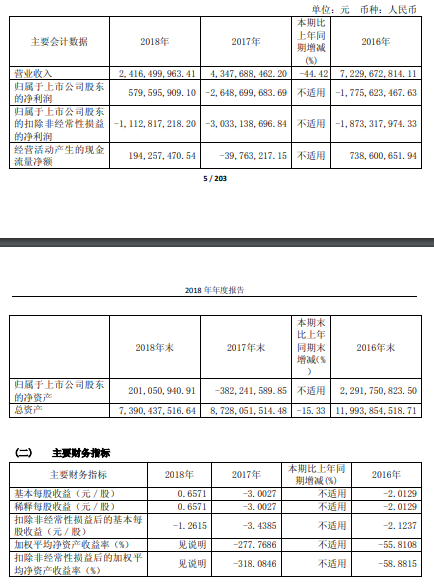 *ST大唐17日晚发布2018年年度报告,实现营业收入24.16亿元,同比减少44.42%;实现归属于上市公司股东的净利润5.796亿元,去年同期则为净亏损26.49亿元;归属于上市公司股东的扣除非经常性损益的净亏损11.13亿元,去年同期则为净亏损30.33亿元;基本每股亏损0.6571元,无派息。
