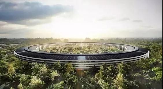 苹果的新总部大楼为环状建筑,中间是大型庭院,用史蒂夫·乔布斯生前自己的话来形容,新大楼像“一艘着陆的宇宙飞船”。大楼整体采用智能系统,合理控温,灯光,空气湿度,是全球最大的智能系统大楼的首创。