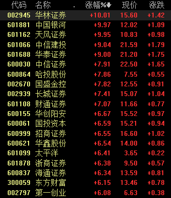 周三早盘,券商股开盘领涨,截至发稿,天风证券、华林证券、中国银行等多股涨停,同时,保险等金融板块联动走强。
