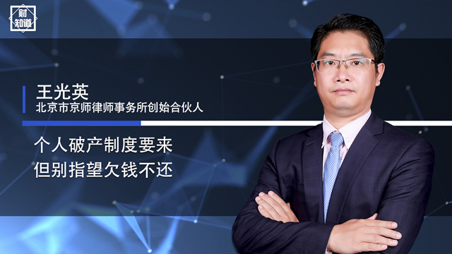 北京市京师律师事务所创始合伙人王光英认为,企业界特别是公司,已经有了相应的破产制度,而且比较成熟,那么自然人也需要设立这样的一个制度,才有利于优化我们国家关于债务清偿的结构;要严格确定个人破产条件,既要有惩罚措施,又要给人改过自新的机会,从而达到完善社会诚信体系建设的目标。点击视频,一看究竟。