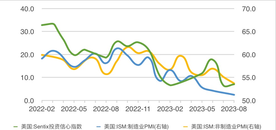 图4 2018年至今的美国投资者信心指数和PMI指数