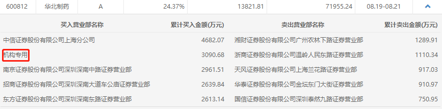 华北制药今天收报5.38元,涨6.32%,成交额4.78亿元,换手率5.44%。龙虎榜数据显示,买二为机构席位,是异常区间内获机构净买入最多的个股。