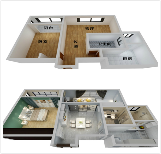 装修后户型:2室/1厅/1卫/1厨