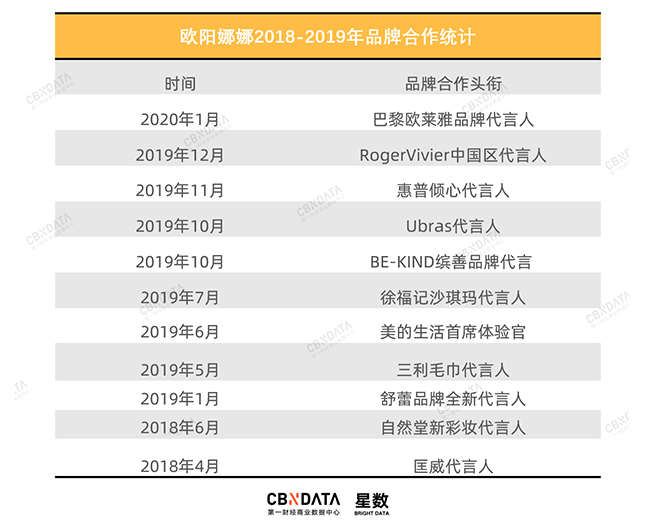 2018年至今,欧阳娜娜一共与12个品牌进行了深度合作,其中10个都是高规格的代言人身份。