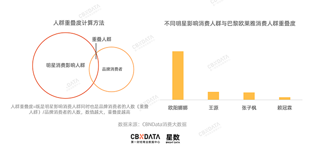 CBNData星数分析了四位00后明星与巴黎欧莱雅的消费人群重叠度,发现欧阳娜娜还是以断层式的高度重叠位列榜首。这就说明,欧阳娜娜的“带货粉丝”不仅人数多,商业价值也颇高。对于像欧莱雅这样的头部快消品牌来说,欧阳娜娜带货力辐射的人群都是品牌高度匹配的“潜在客群””。