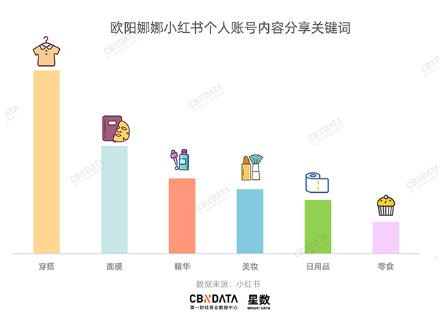 在小红书中,穿搭和面膜成为欧阳娜娜分享的热门关键词