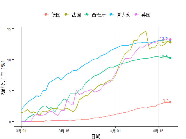 图14 欧洲主要疫情国家确诊死亡率