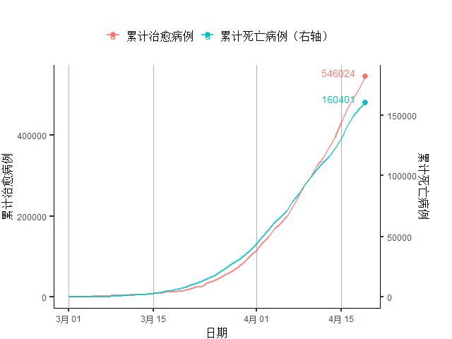 图10 国际新冠死亡与治愈人数
