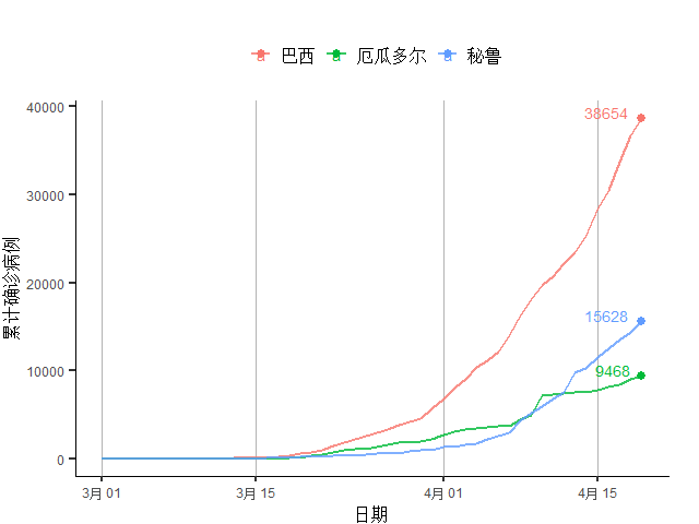 图15 美洲主要疫情国家累计确诊病例