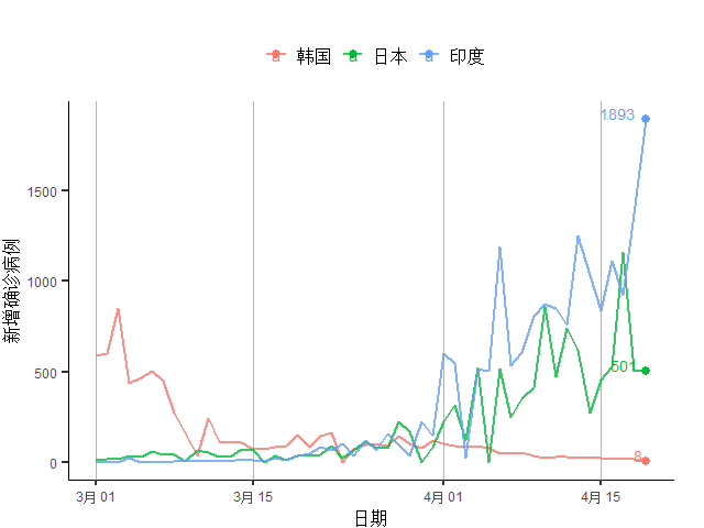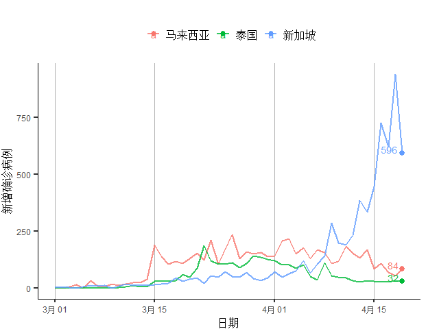 图19 亚太主要疫情国家新增确诊病例