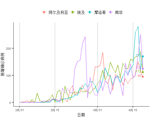 图22 非洲主要疫情国家新增确诊病例