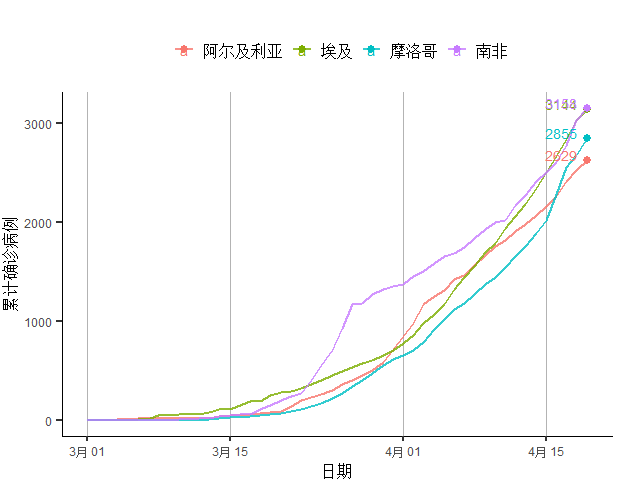 图21 非洲主要疫情国家累计确诊病例