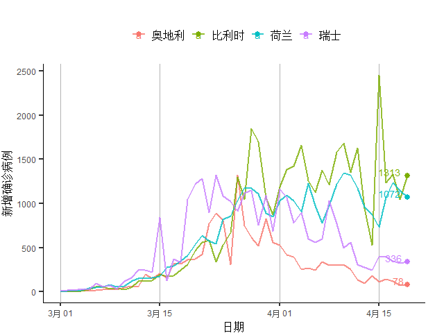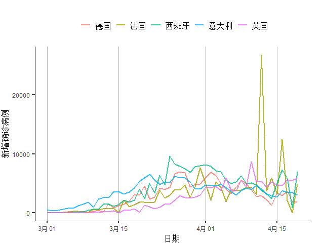 图13 欧洲主要疫情国家新增确诊病例