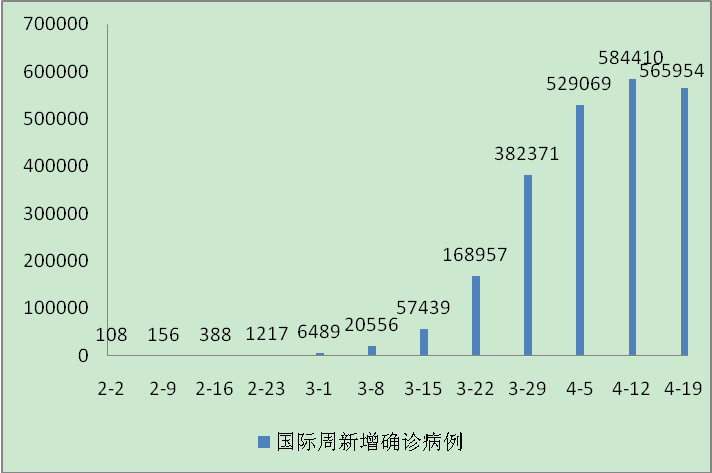 图1 国际周新增确诊病例(截至当天的一周)