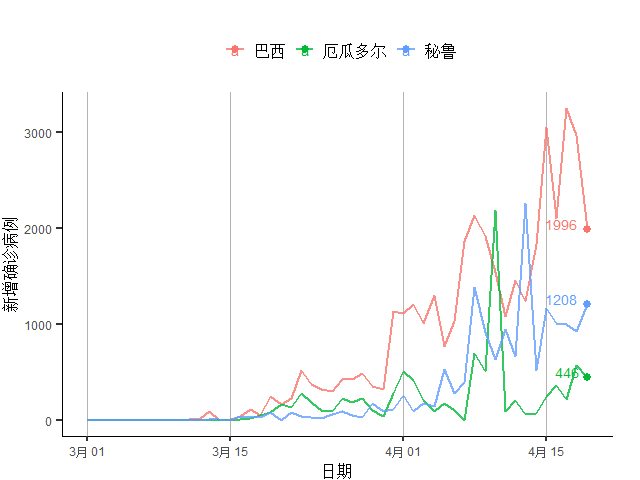 图16 美洲主要疫情国家新增确诊病例