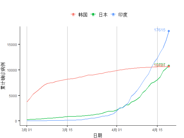 图18 亚太主要疫情国家累计确诊病例