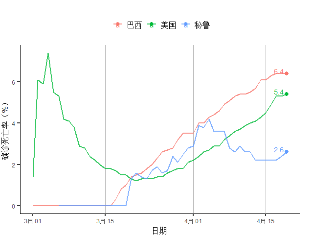 图17 美洲主要疫情国家确诊死亡率