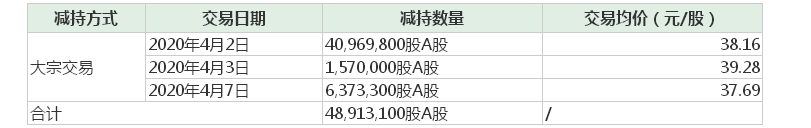 6月22日,中兴新公司通过大宗交易减持中兴通讯2036.68万股A股,交易均价为39.44元/股,对比当日收盘价42.19元/股,折价减持约6.51%。
