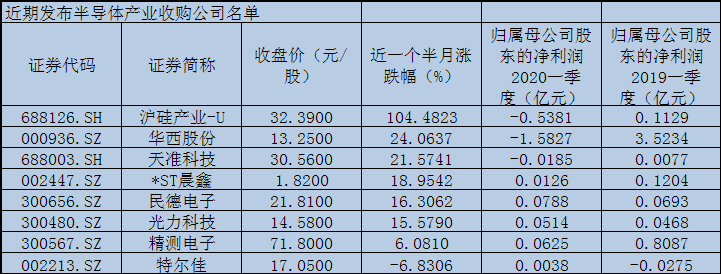 实际上,自5月中下旬以来,A股半导体一级投融资市场热度持续升温,有8家上市公司发布了半导体产业相关的收购案例。