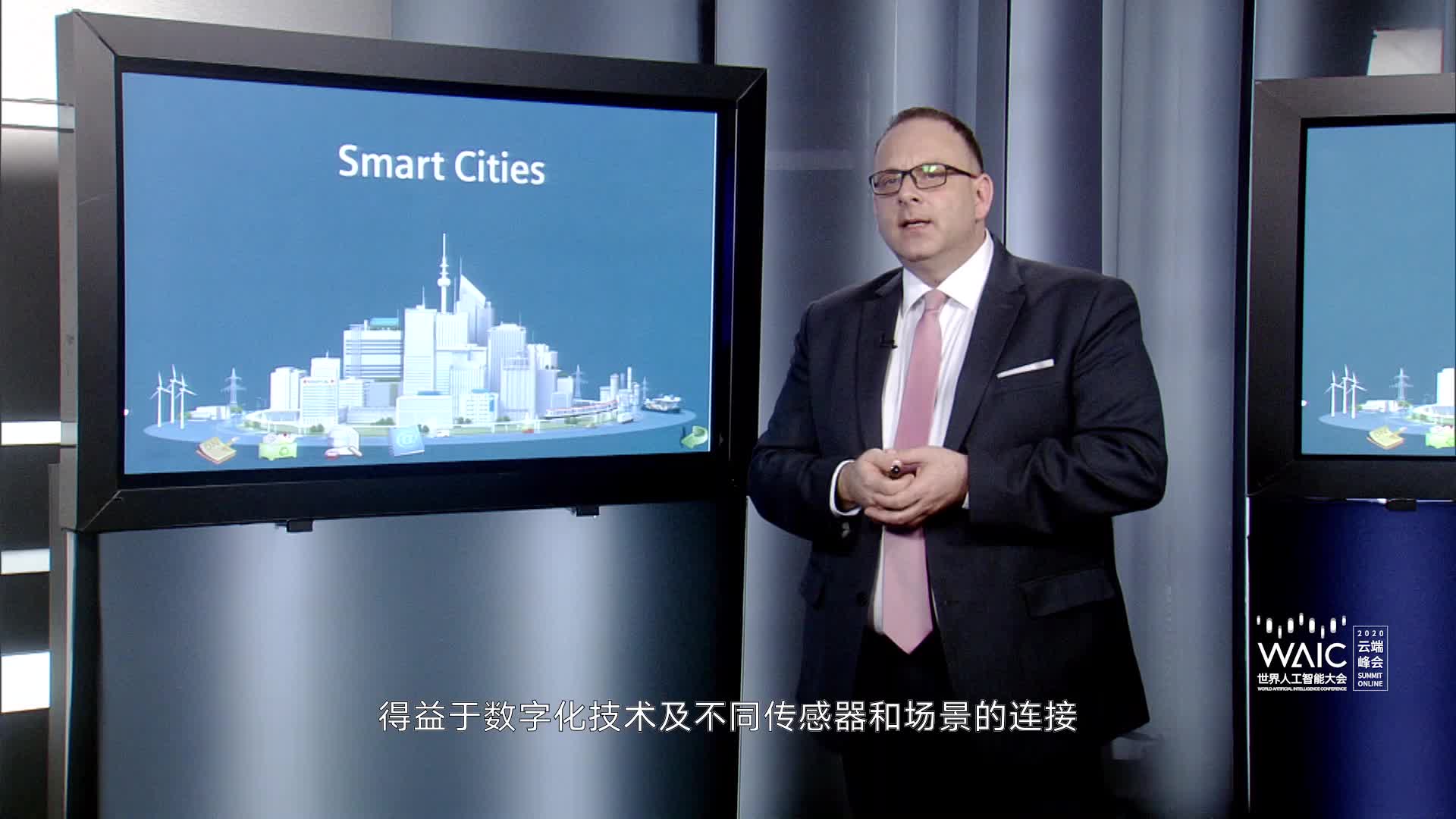 第二,西门子公司推出了3D战略。那么,3D是什么意思呢?3D代表去碳化、去中心化和数字化。世界正在从以化石燃料为中心的发电厂转向可再生能源,风能,太阳能,以及许多分布式发电机。通过数字化,这一切成为可能,我们需要互相连接。我们需要连接其他不同的实体。我想在这里展示的是,智能城市也正在发生颠覆性的变化。智能城市真正的变革正在到来。