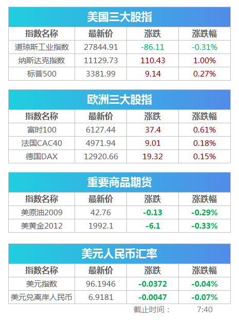 北京时间18日凌晨,美股周一收盘涨跌不一,纳指创盘中与收盘历史新高,标普指数逼近历史最高纪录。财报季即将结束,市场继续寻找方向。美国财政刺激方案、总统大选及国际关系等因素受到关注。道指跌86.11点,或0.31%,报27844.91点;纳指涨110.42点,或1.00%,报11129.73点;标普500指数涨9.14点,或0.27%,报3381.99点。