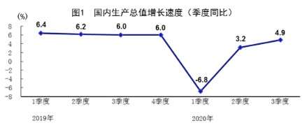 国家统计局发布了三季度中国经济数据,第三季度中国经济增长4.9%,前三季度同比增长0.7%,增速正式转正。