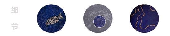 “首先是柳费国先生在西藏拍到一张蓝色星空的照片,他觉得神秘热烈的蓝色恰好用来展现宇宙的能量;那时候,刚好我的孩子刚出生,所以就找到了小脚丫的图案作为我自己对生命的一种个人体会;马未都先生认为鱼的图腾是全世界所有民族都共有的,所以我们从仰韶文化的陶罐上的鱼开始,一直到清代末的这个三尾的观赏鱼,呈现了一个鱼纹的脉络。”