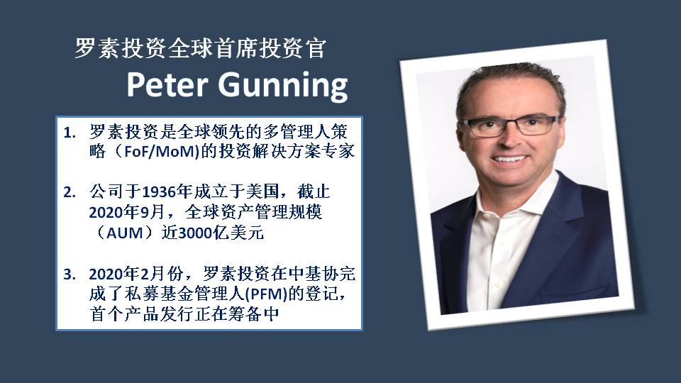 近期疫苗好消息不断,挑动市场的神经。一方面,疫苗为解决疫情带来希望,另一方面,在目前的进展之下,疫苗又能对全球经济复苏带来多大的帮助?带着问题,顶级投资人节目采访了罗素投资全球首席投资官 Peter Gunning。罗素投资是全球领先的多管理人策略(FoF/MoM)的投资解决方案专家;公司于1936年成立于美国,目前全球资产管理规模近3000亿美元。罗素投资在中国市场发行的首个产品正在筹备中。更多精彩,点击视频,一探究竟!