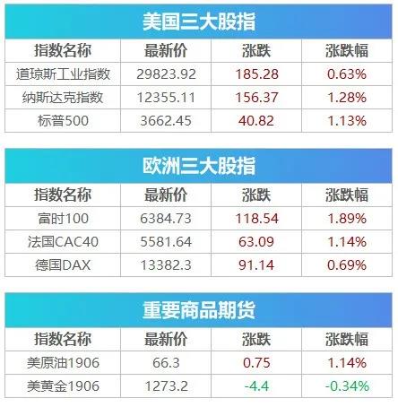 截至收盘,道指上涨185.30点,涨幅0.63%,报29823.92点;标普500指数上涨40.80点,涨幅1.13%,报3662.45点;纳指上涨156.40点,涨幅1.28%,报12355.11点。