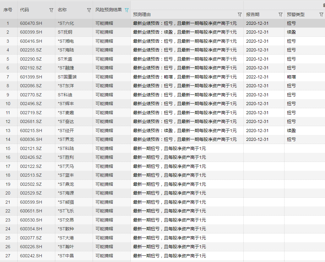 值得关注的是,还有15只ST股可能带上*,其中包括ST椰岛、ST金刚等。