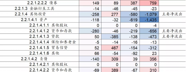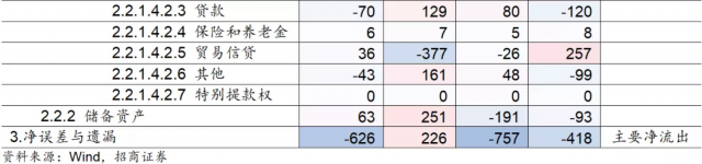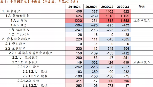 其次,从2020年Q2、Q3这两个季度的情况看,资本流入的主要领域在于货物贸易顺差、证券投资、直接投资,资本流出的主要领域在于其他投资(中的货币和存款、贷款)、净误差与遗漏项。