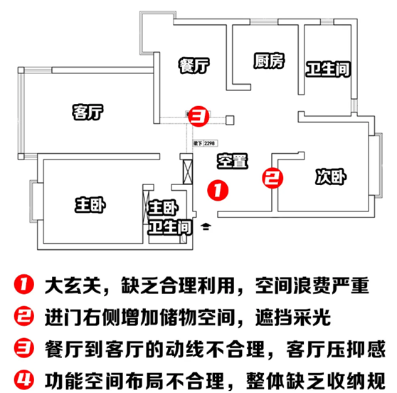 设计师看到钱女士家的状况,献上大写加粗的【服气】二字:原本的三房两厅,硬生生的改成了两房两厅,同时制造出了弯来绕去的奇怪动线,还有许多欣赏不来的碎花造型。