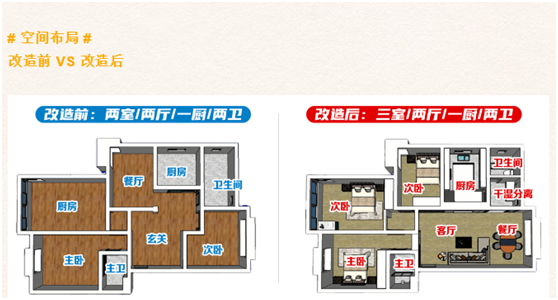 本期改造:5年前,钱女士将满腔热情错付了马路游击队,不仅收获了老干部风客餐厅、花里胡哨的卧室,还将原本的三房缩成两房,颜值低、空间乱,在一家人的万般嫌弃之下,钱女士找到《最家计划》,希望来一波改头换面的神操作。