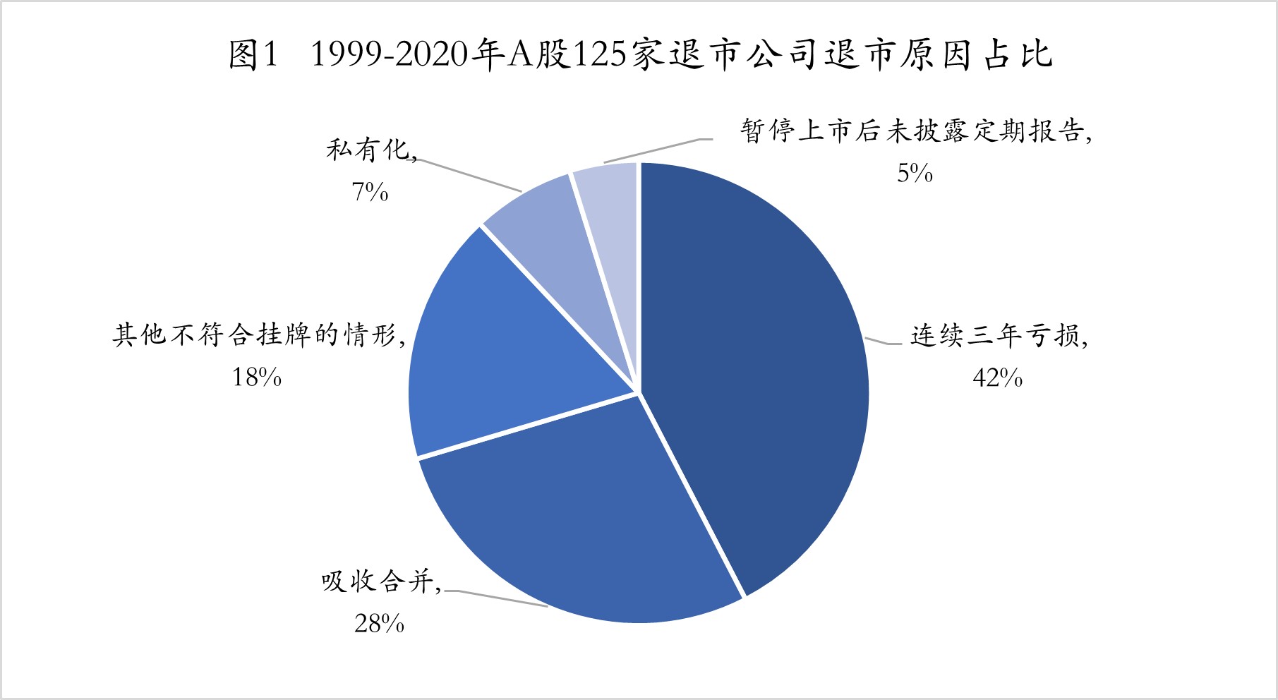 目前整体退市的125家公司中,因连续三年以上亏损退市的有53家,占比近半;因吸收合并退市的有35家;因面值退市、重大违法退市等其他不符合挂牌情形的公司有22家;因私有化退市的有9家;因暂停上市后未披露定期报告的有6家。
