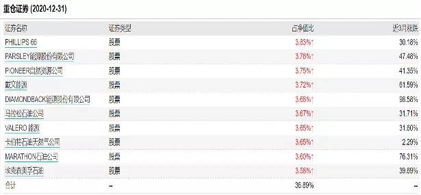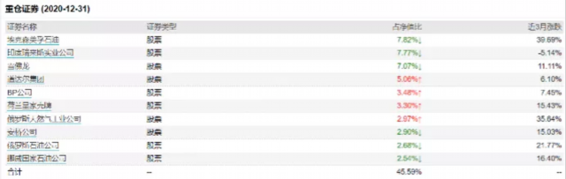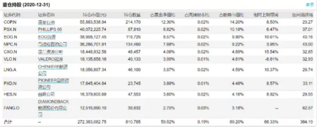 图:石油基金(160416.SZ)重仓证券(2020.12.31)