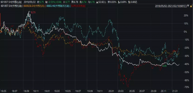 图:中国石油、中国石化及中国海洋石油与原油价格走势
