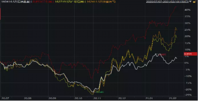 图:2020年7月以来布伦特原油与原油基金收益率走势
