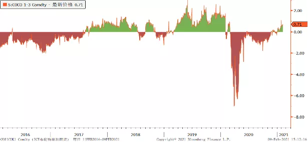 图4:布伦特原油价差2021年1月来进入back,并可能维持