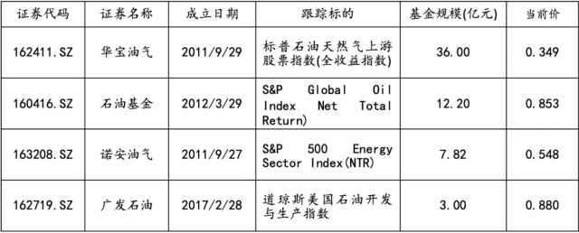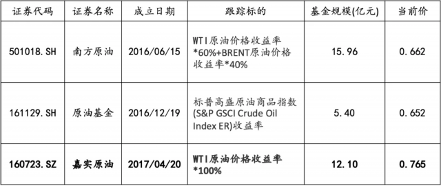 原油商品类ETF主要包括国外USO(United States Oil Fund,美国原油基金)、国内的南方原油、易方达原油基金、嘉实原油,它们共同的特点是投资WTI或Brent原油期货,密切跟踪原油期货价格波动。