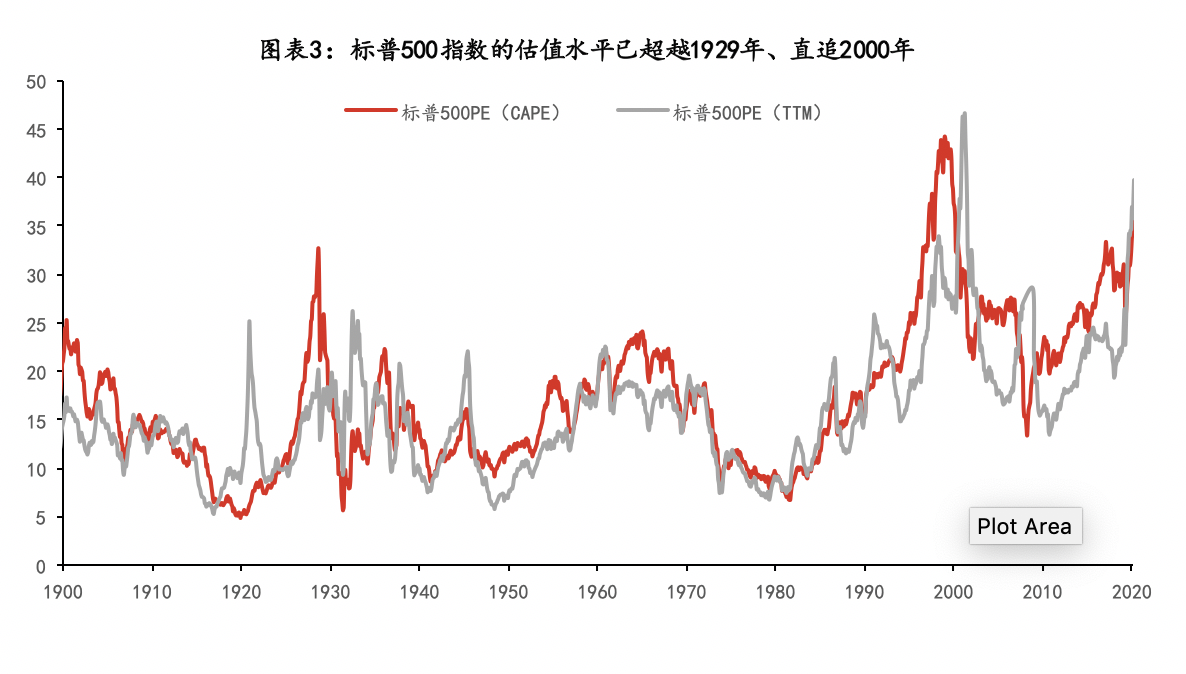 超宽松货币下股票受益较大,主要因为1)利率下行促使股票估值抬升;2)宽货币促进信贷扩张、低利率降低负债成本,有利于企业盈利修复;3)大量货币流入股票市场,带来流动性溢价;4)2019年欧央行工作论文认为,量化宽松将会降低股市波动率、提升投资者乐观情绪,进而提升风险偏好。在超宽松货币推动下,标普500指数估值已经超越1929年大萧条前期,直追2000年互联网泡沫的峰值。