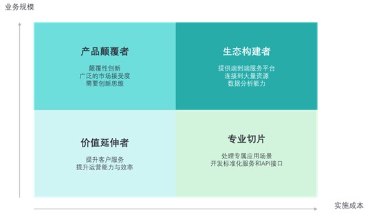 另外,安永预计未来几年5G企业应用领域将出现很多不同的业务模式,根据业务规模和实施成本可分为四大类: