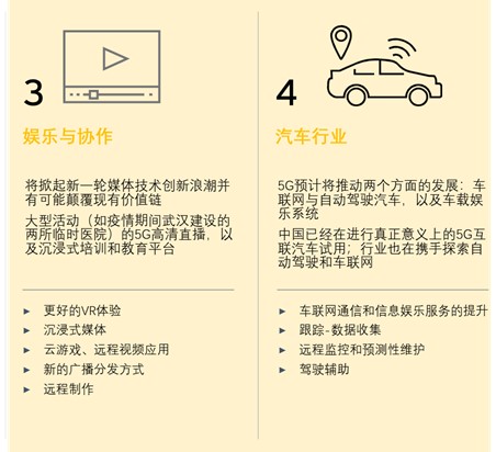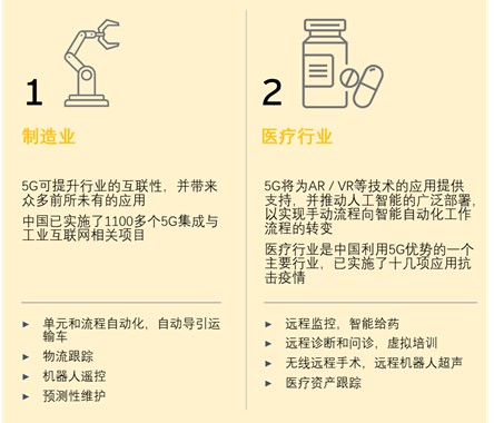 安永亚太区首席创新官、安永大中华区科技、媒体与电信行业市场主管合伙人罗奕智表示:“在疫情危机期间,中国加快建设5G网络,打造了一个极具活力的环境,在医疗和教育等行业领域推出了应对疫情的5G商业应用。‘新基建计划’下的国家议程将支持衍生新的5G应用场景,引领多个行业探索新业务模式,预计制造业、医疗健康、娱乐和交通行业将在短期内受到较大影响。”
