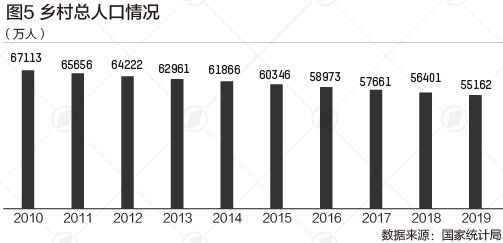 近年来由于城镇化加速,我国乡村总人口连年下降,从2010年的6.7亿人降至2019的5.5亿,但流向城镇地区的人口绝大多数是劳动年龄人口,从而加深了农村地区的老龄化程度,形成老龄化“城乡倒置”的状况。